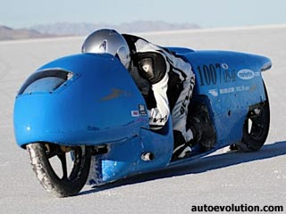 Motor power 41 bhp was driven by 27-year-old racing driver, Scott Kolb which makes it the fastest motorcycle streamliner for the category this year, namely a capacity of 125 cc motorcycles.